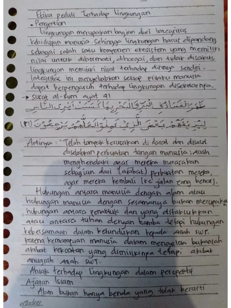 Satu, nilai ketuhanan yang maha esa mengandung arti adanya pengakuan dan keyakinan terhadap tuhan yang maha esa, nilai ini menyatakan bahwa bangsa indonesia adalah bangsa yang relegius yang memiliki … Paradigma ini memberikan gagasan terhadap pemahaman pertumbuhan kehidupan ekonomi dengan berbasis pada ekologi yang sekaligus memberikan peningkatan kualitas dan standar hidup, tidak hanya pada faktor ekonomi tetapi juga … Akhlak terhadap lingkungan hidup 96 bab vi. Upaya melihat sikap dan perilaku tersebut dilakukan dengan kritis dan rasional. Etika deskriptif merupakan jenis etika yang berupaya melihat sikap dan perilaku manusia serta apa yang ia kejar dalam kehidupan ini sebagai hal yang memiliki nilai. Etika adalah aturan, norma, kaidah, ataupun tata cara yang biasa digunakan sebagai pedoman atau asas suatu individu dalam … Pembelajaran etika lingkungan melalui model pembelajaran oidde 121 c. 15.03.2017 · hal lain yang penting dalam komunikasi adalah persepsi. 23.12.2019 · apa yang terjadi jika tidak ada filsafat pancasila? Lingkungan adalah kombinasi antara kondisi fisik yang mencakup keadaan sumber daya alam seperti tanah, air, energi surya, mineral, serta flora dan fauna yang tumbuh di atas tanah maupun di dalam lautan, dengan kelembagaan yang meliputi ciptaan manusia seperti keputusan bagaimana menggunakan lingkungan fisik tersebut.lingkungan juga dapat diartikan menjadi segala sesuatu yang … Proses persepsi ini dapat terpengaruh berbagai hal, seperti keadaan si penerima pesan dan lingkungan tempat pesan disampaikan. Pembelajaran etika lingkungan 111 a. Etika jenis ini menjadikan fakta sebagai suatu dasar untuk pengambilan keputusan mengenai sikap dan perilaku yang hendak diambil.