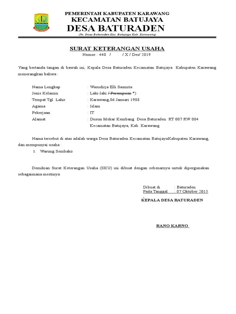 Surat Keterangan Usaha Dari Desa Doc : Surat Keterangan Usaha Doc : Yang bertanda tangan dibawah ini.
